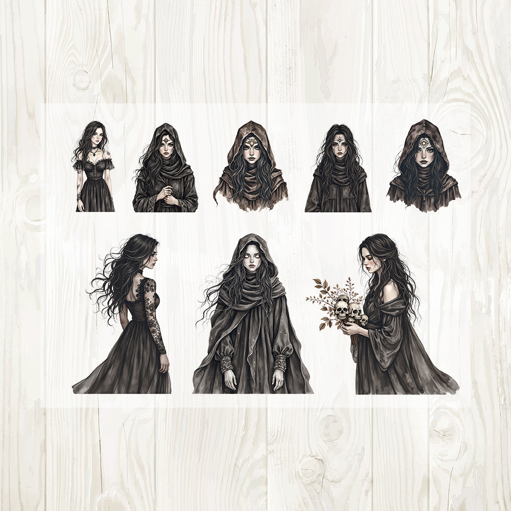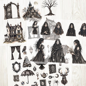 A4 Gothic Witch matte PET pre-cut large sticker 1 pack 3 sheets