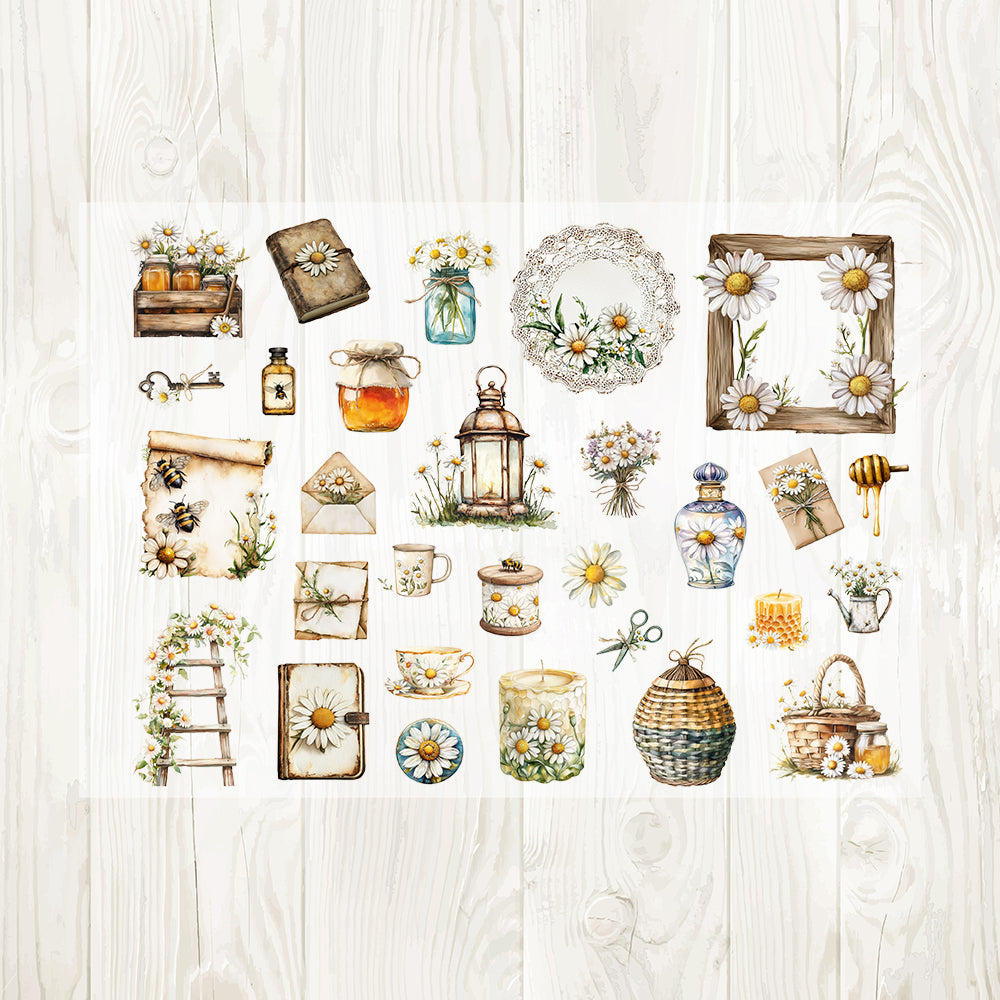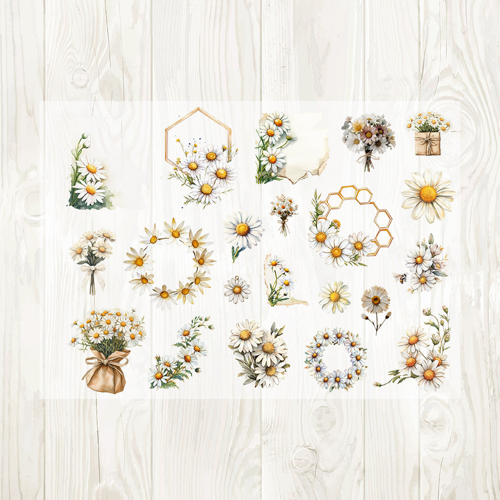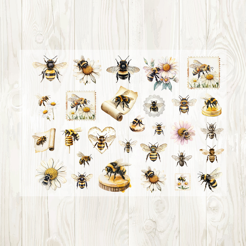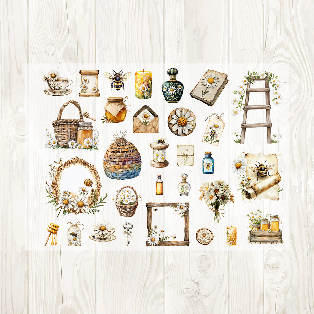 A4 Honey bee and daisy matte PET pre-cut large sticker 1 pack 5 sheets