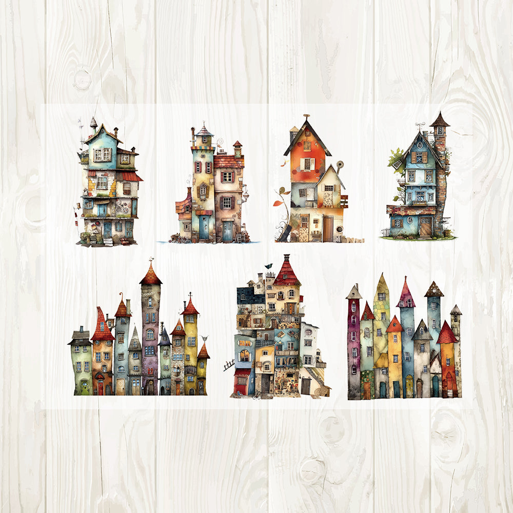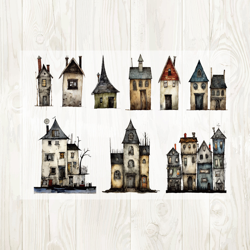 A4 Spooky houses matte PET pre-cut large sticker 1 pack 3 sheets