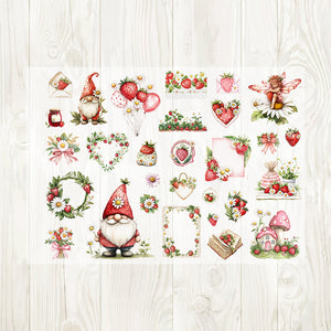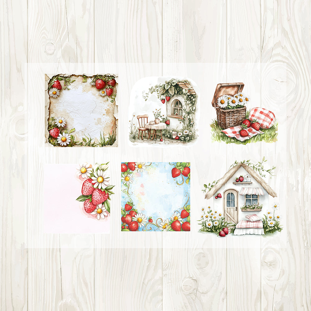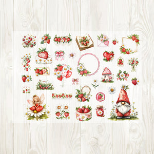 A4 Strawberry garden matte PET pre-cut large sticker 1 pack 3 sheets
