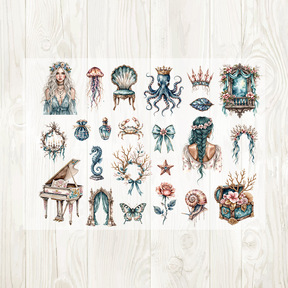 A4 Undersea fantasy matte PET pre-cut large sticker 1 pack 3 sheets