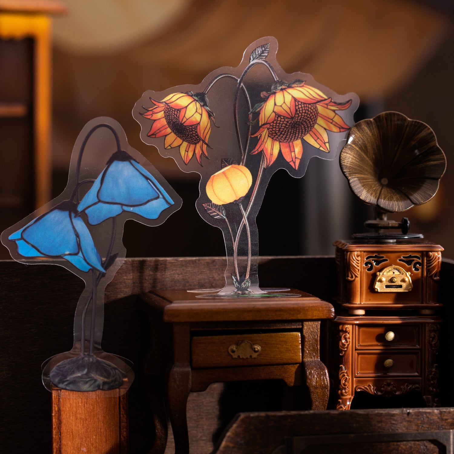 260102 Flowers desk lamp PET sticker -12Pcs each pack