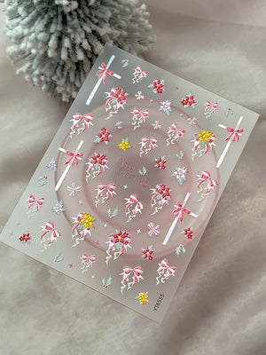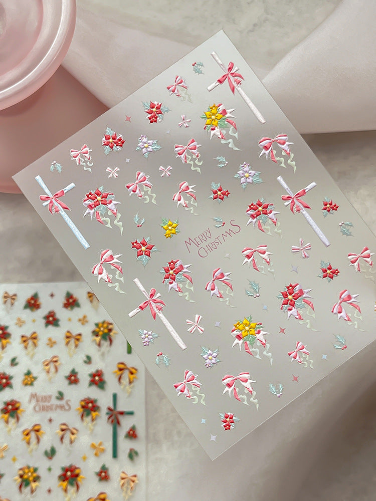 1015 M241- Christmas bow Embossed Mini sticker 1 Pcs