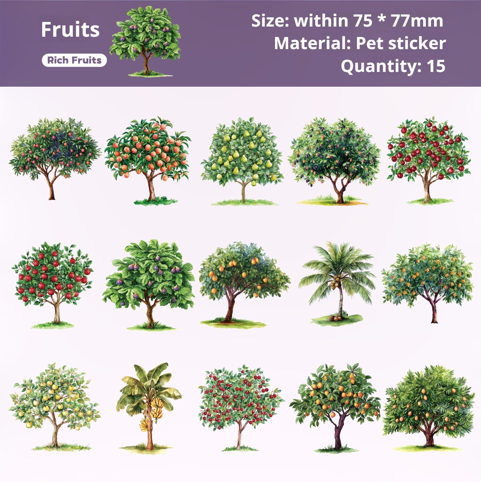 260110 Tree PET sticker -15Pcs each pack