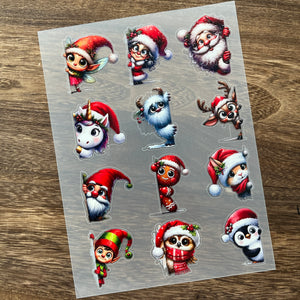 3D Peeking Christmas Characters PET Stickers 1pcs