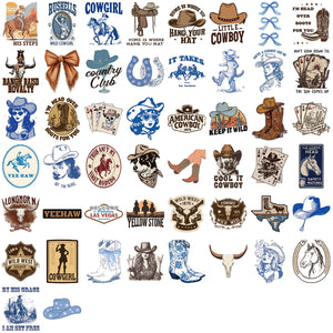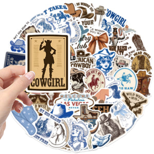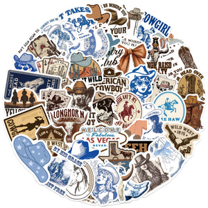 1223 50 western cowboy Stickers solid with white border