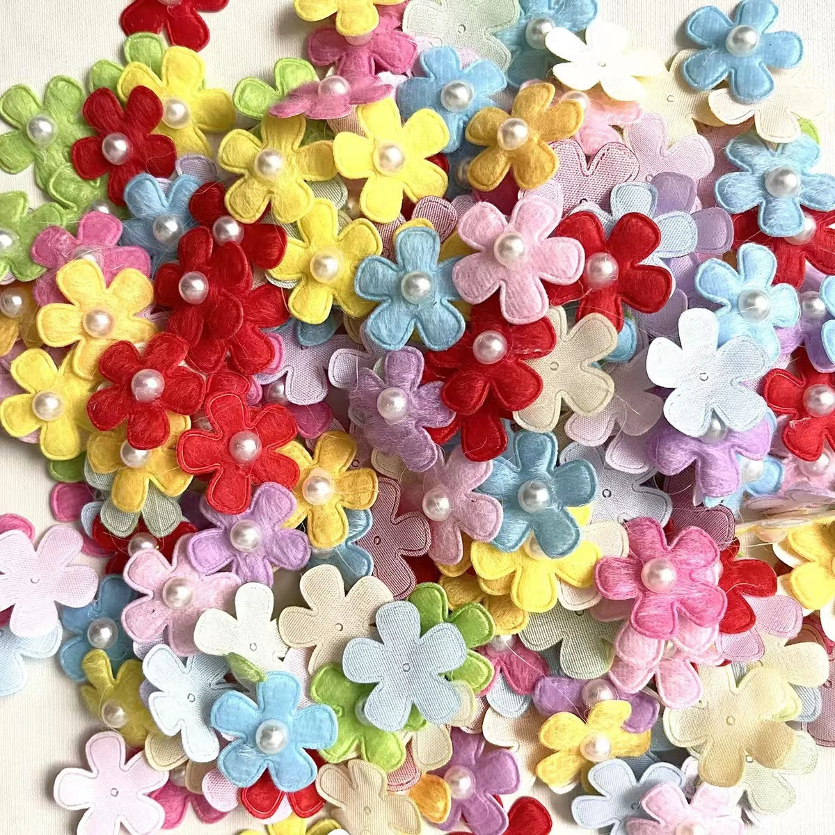 0514 Pearl fabric flower 1 pack 100 pcs