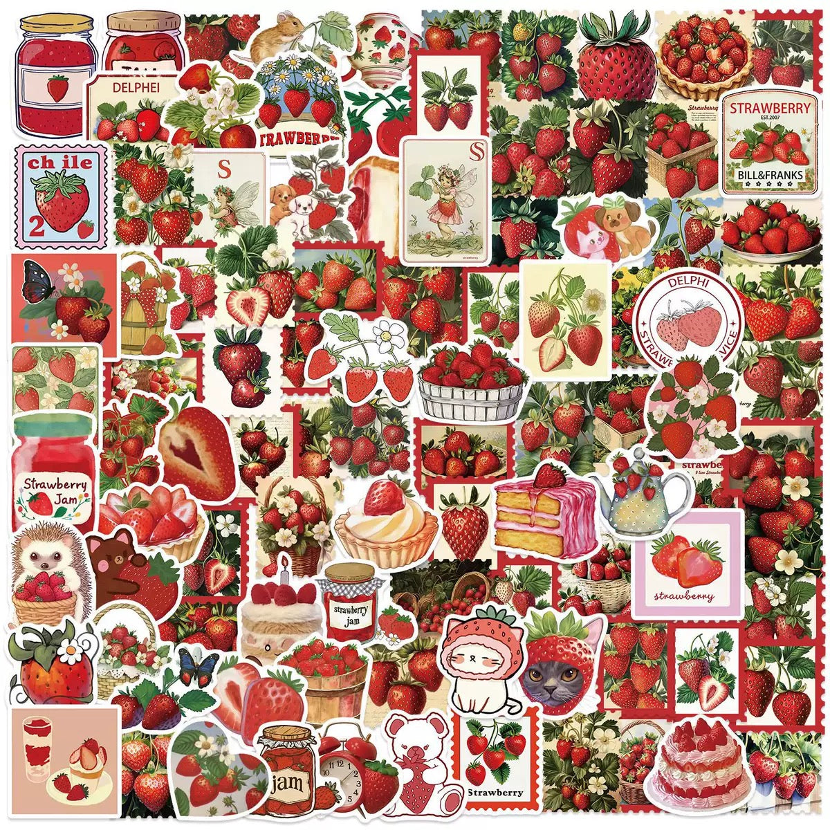 0506 100 Strawberry Stickers solid with white border