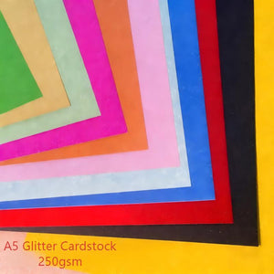 A5 Glitter Cardstock, 50 sheets per pack, 25 colors, 250gsm