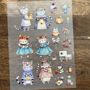 3D Autumn flowers cats PET Stickers 1pcs