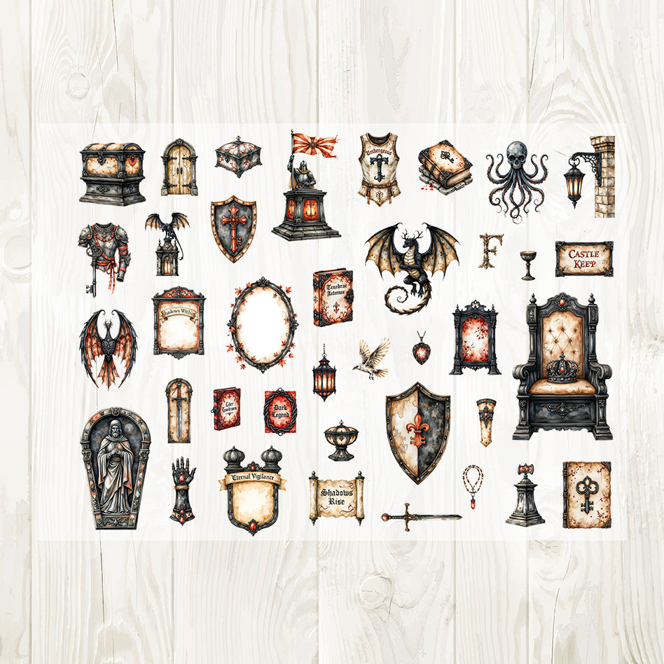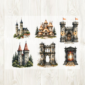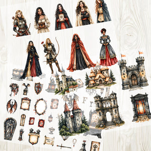 A4 Castles and female warriors matte PET pre-cut large sticker 1 pack 3 sheets
