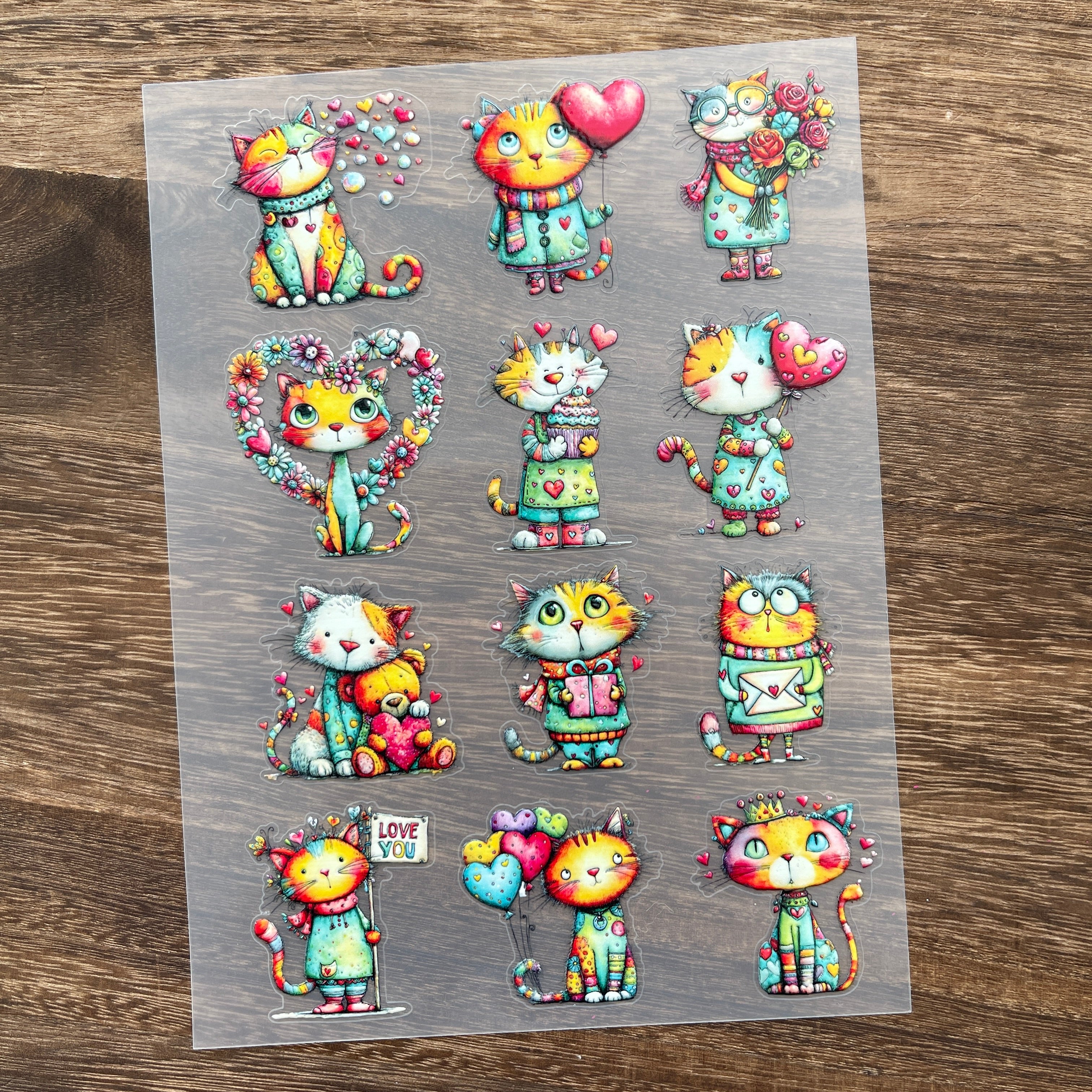 3D Cute colorful Valentine's Day cats PET Sticker 1 Pcs