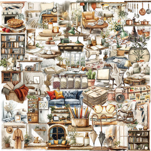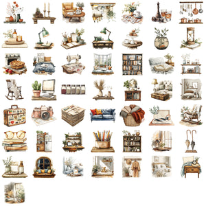 1223 50 Watercolor Home Items PET Stickers
