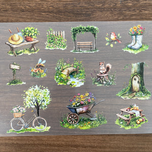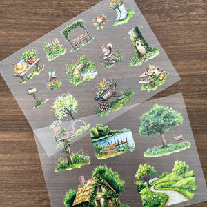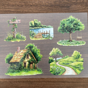 A4 Green scenery matte PET pre-cut large sticker 1 pack 2 sheets