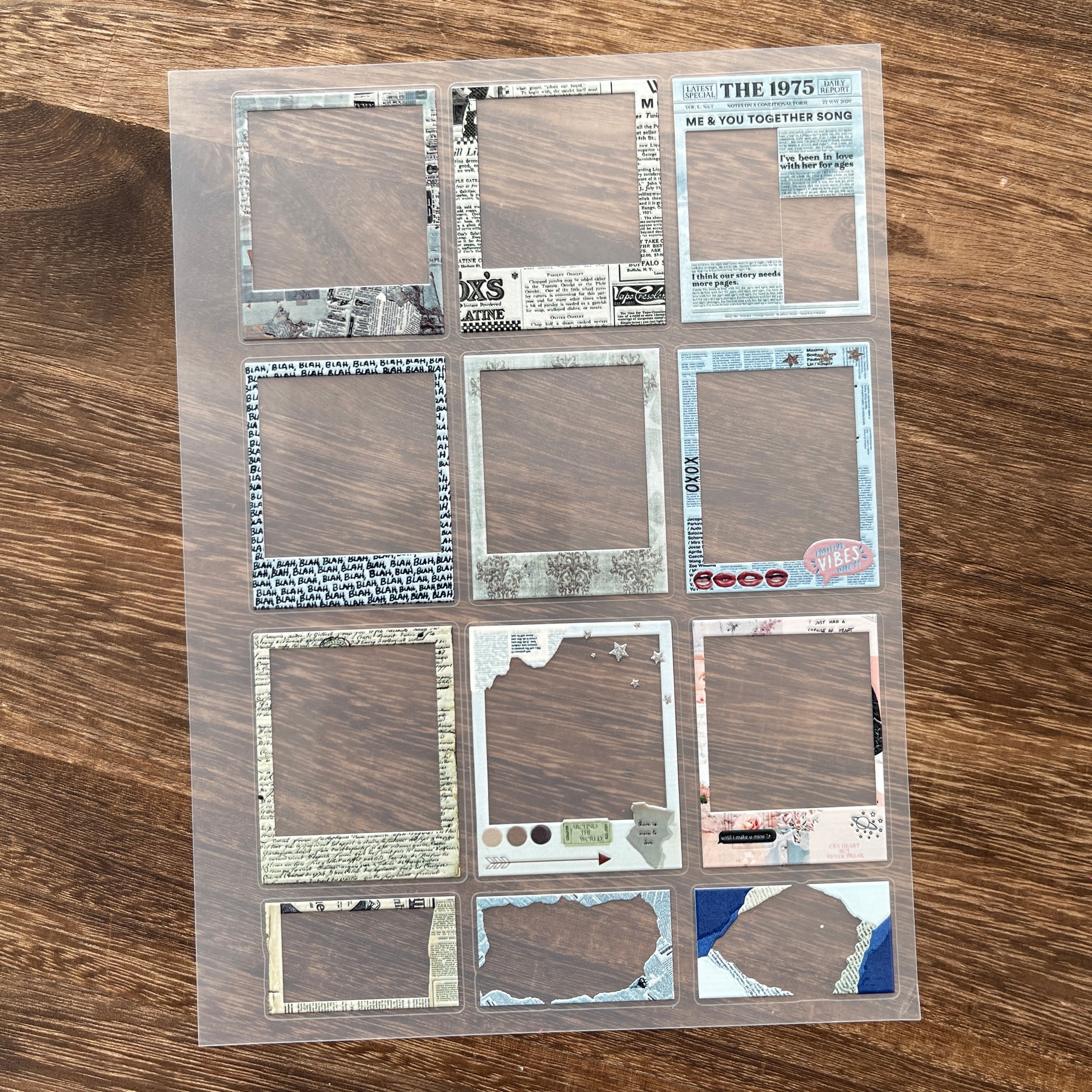 3D Vintage newspaper border PET Sticker 1 Pcs