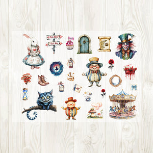 A4 Alice in wonderland matte PET pre-cut large sticker 1 pack 2 sheets