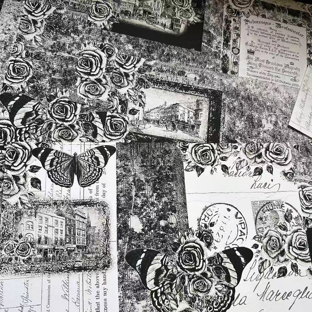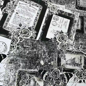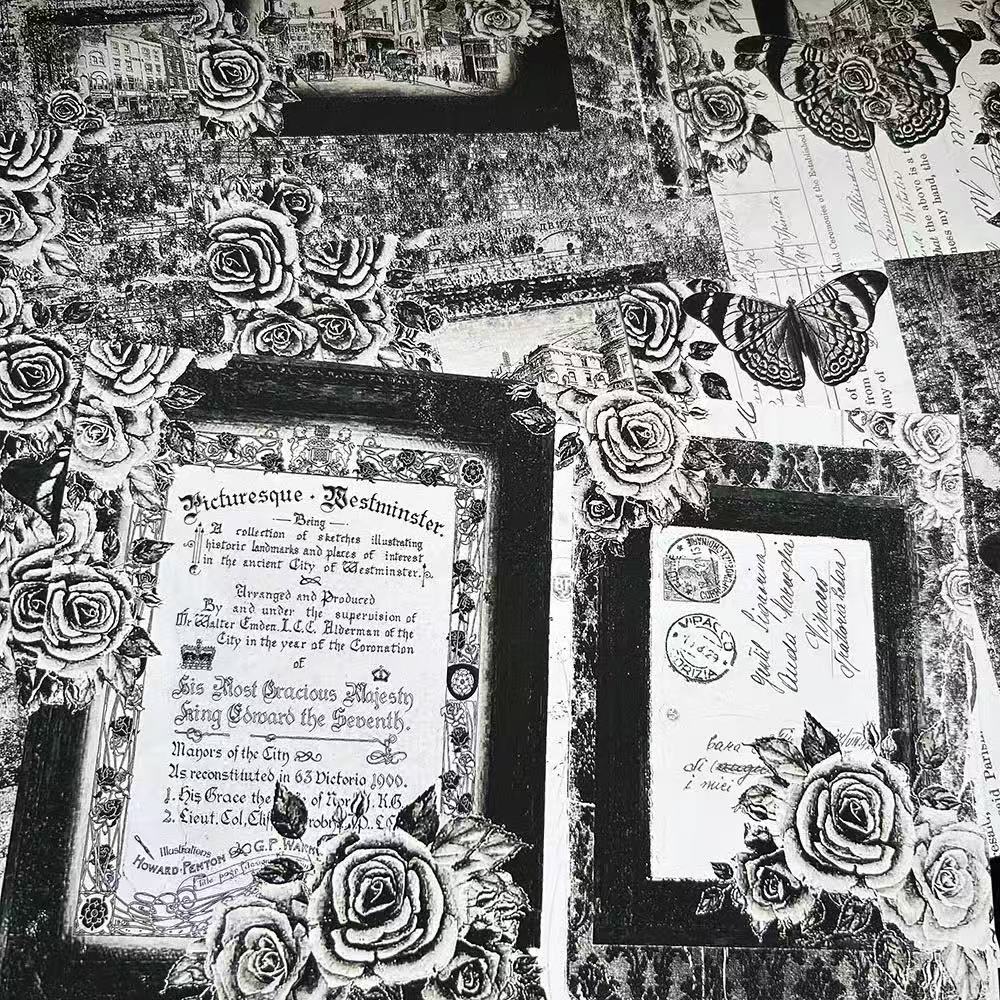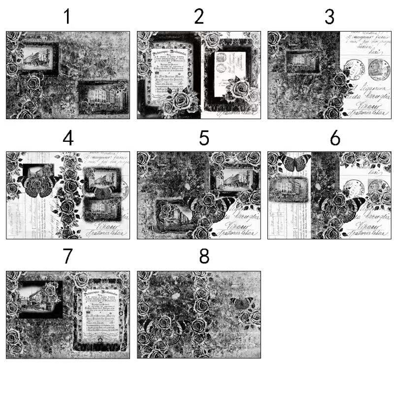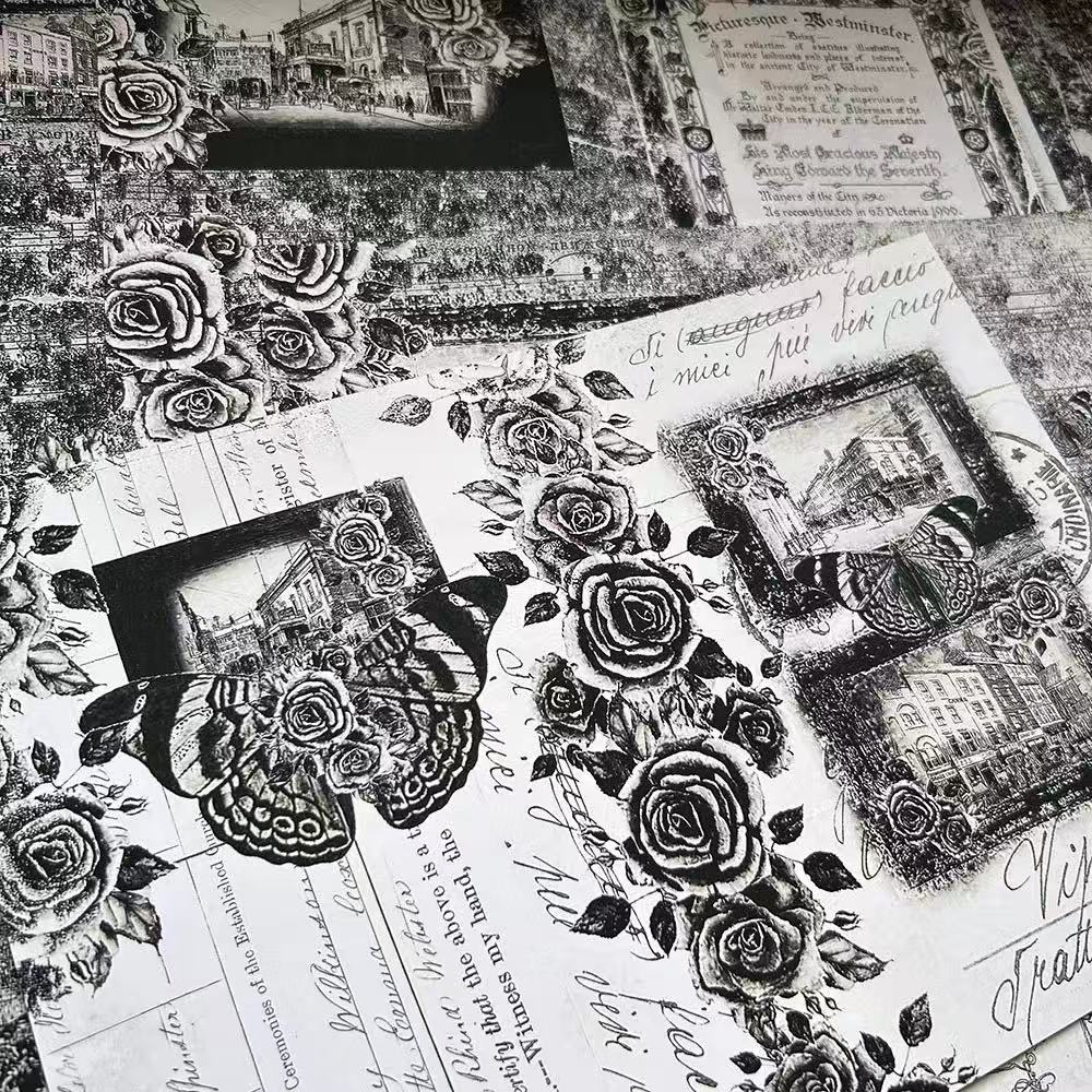 1017 A4 size Vintage black and white roses Style Paper 8 pcs