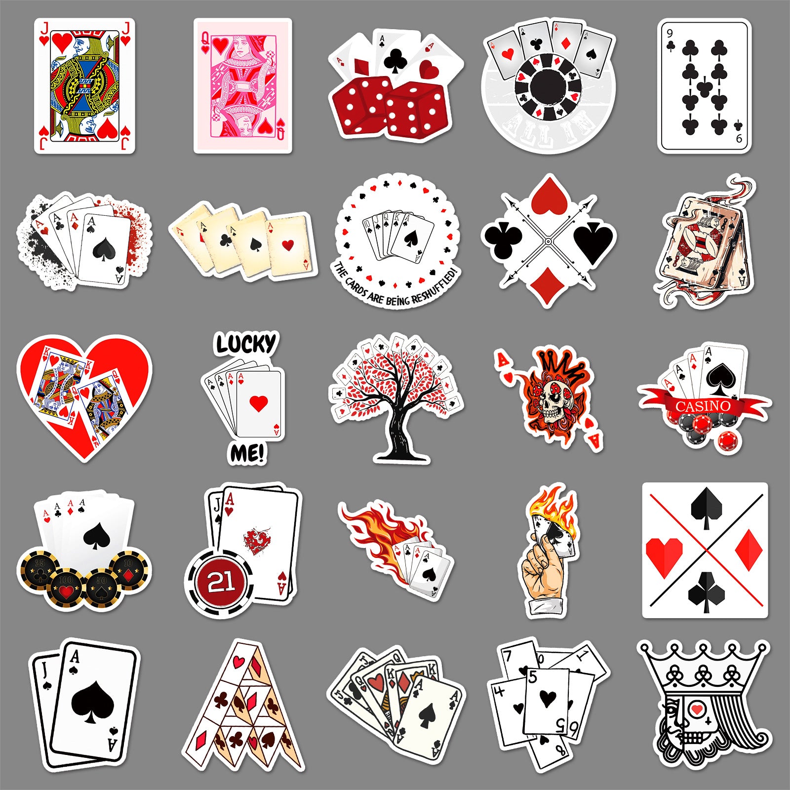 1210 50 Doodle playing cards Stickers solid with white border
