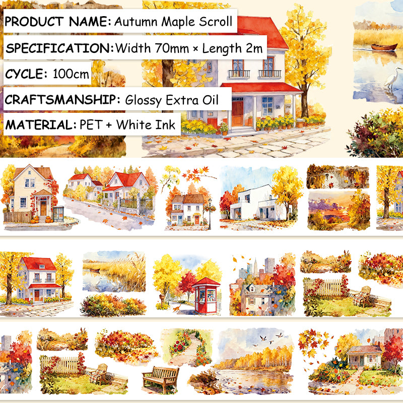 260114 T-496 Autumn Maple Scroll Tape -7cm*2m
