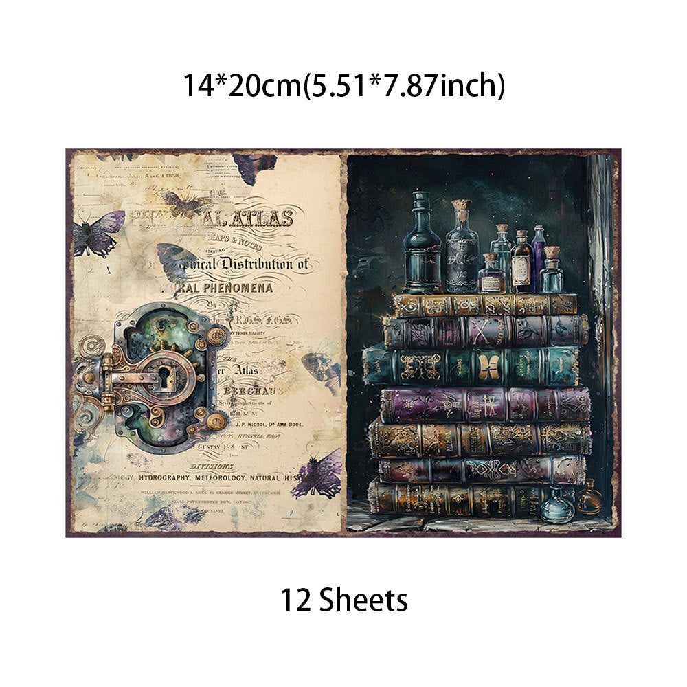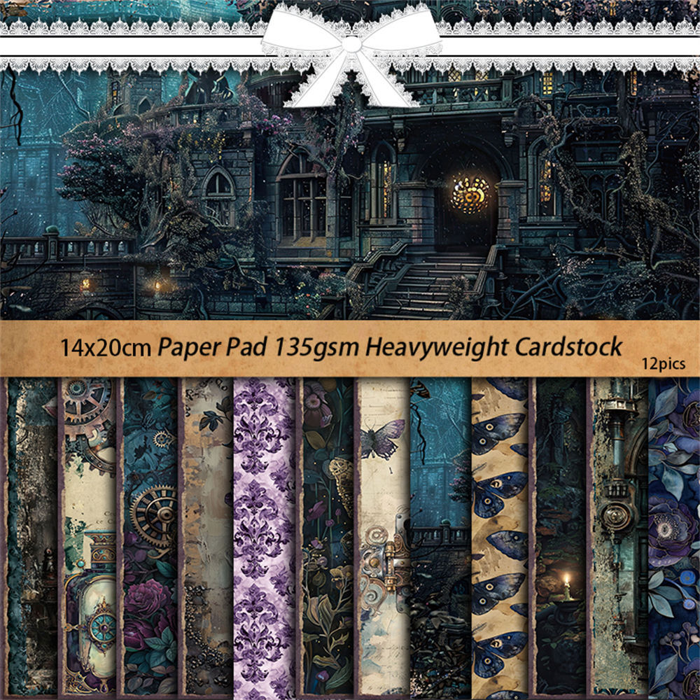 260227 Vintage Shadow Castle Background Paper -12Pcs each pack