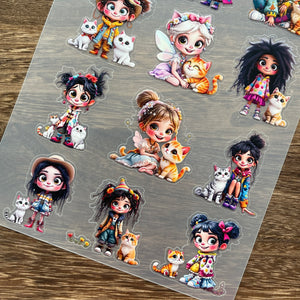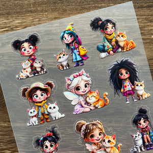 3D Big-eyed girl and cat PET Stickers 1pcs