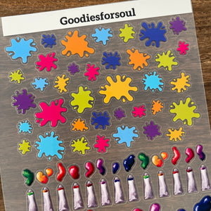 3D Colorful pigments and splashes of colored PET Sticker 1 Pcs