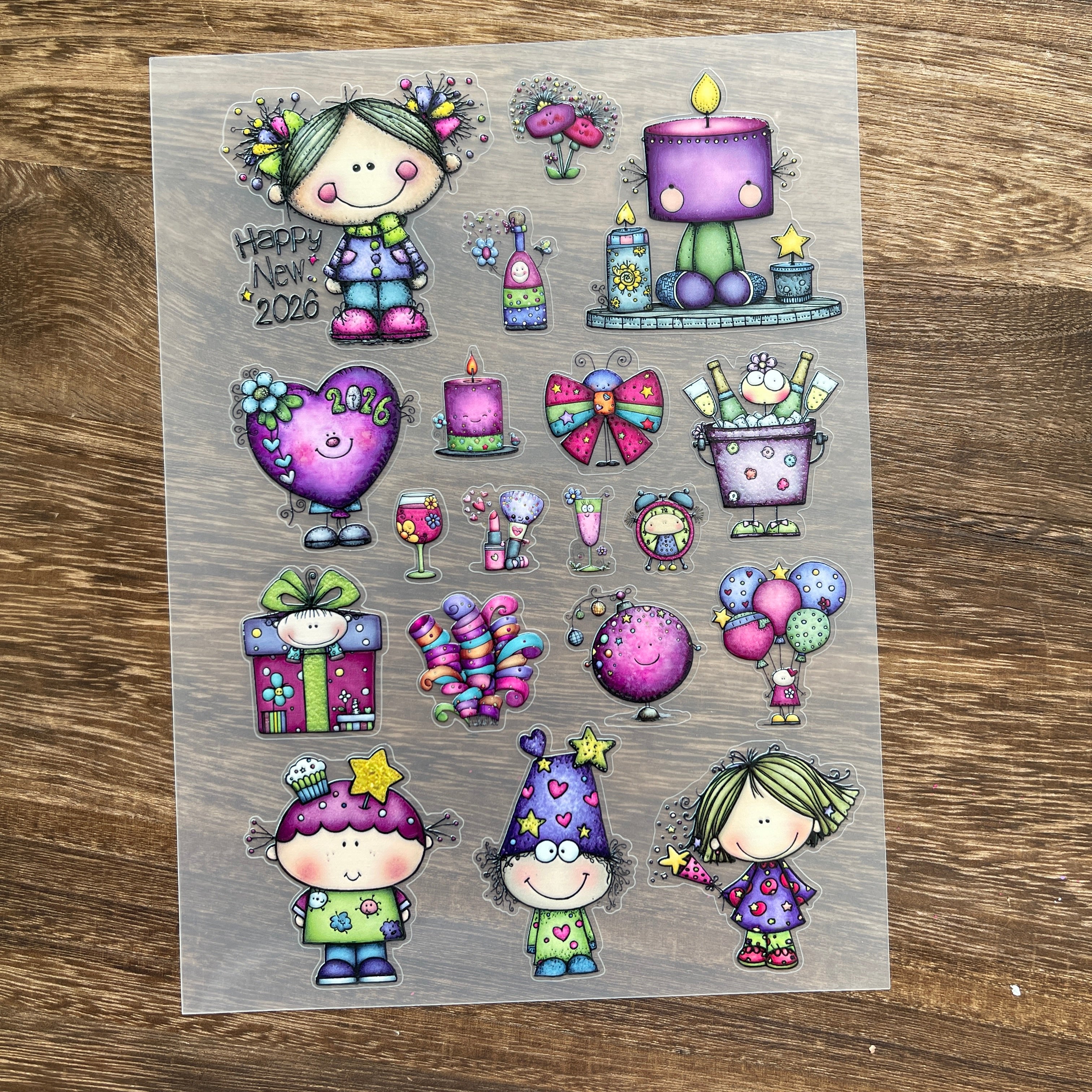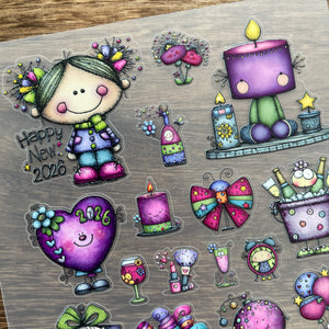 3D Purple 2026 New Year Girl PET Stickers 1pcs