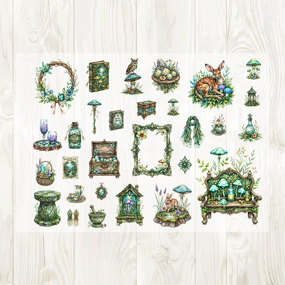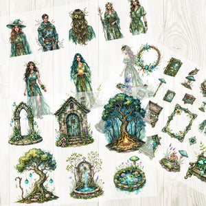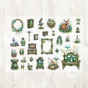 A4 Green Magic Forest matte PET pre-cut large sticker 1 pack 3 sheets