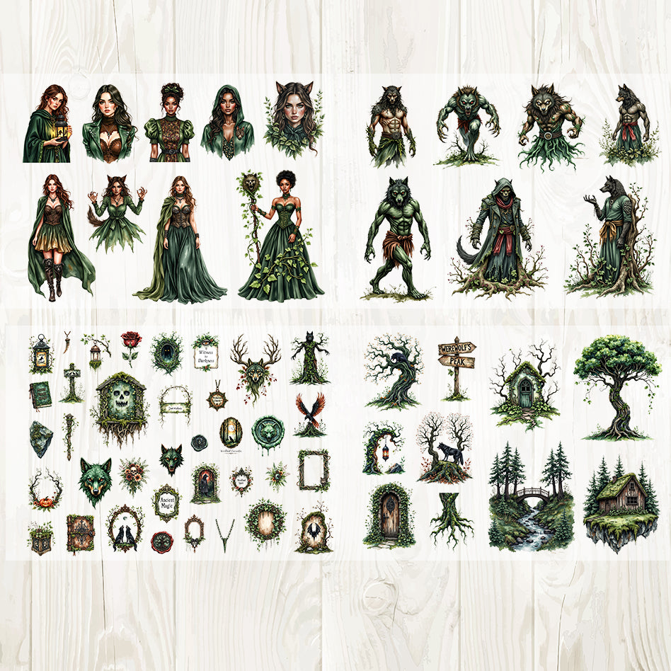 A4 Werewolf Forest matte PET pre-cut large sticker 1 pack 4 sheets