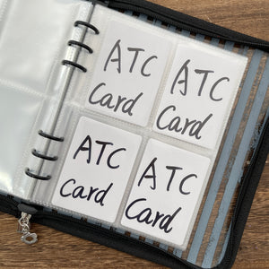 A5 Black stripe clear binder with Zipper + 50 Pcs pocket insert, ATC cards storage book