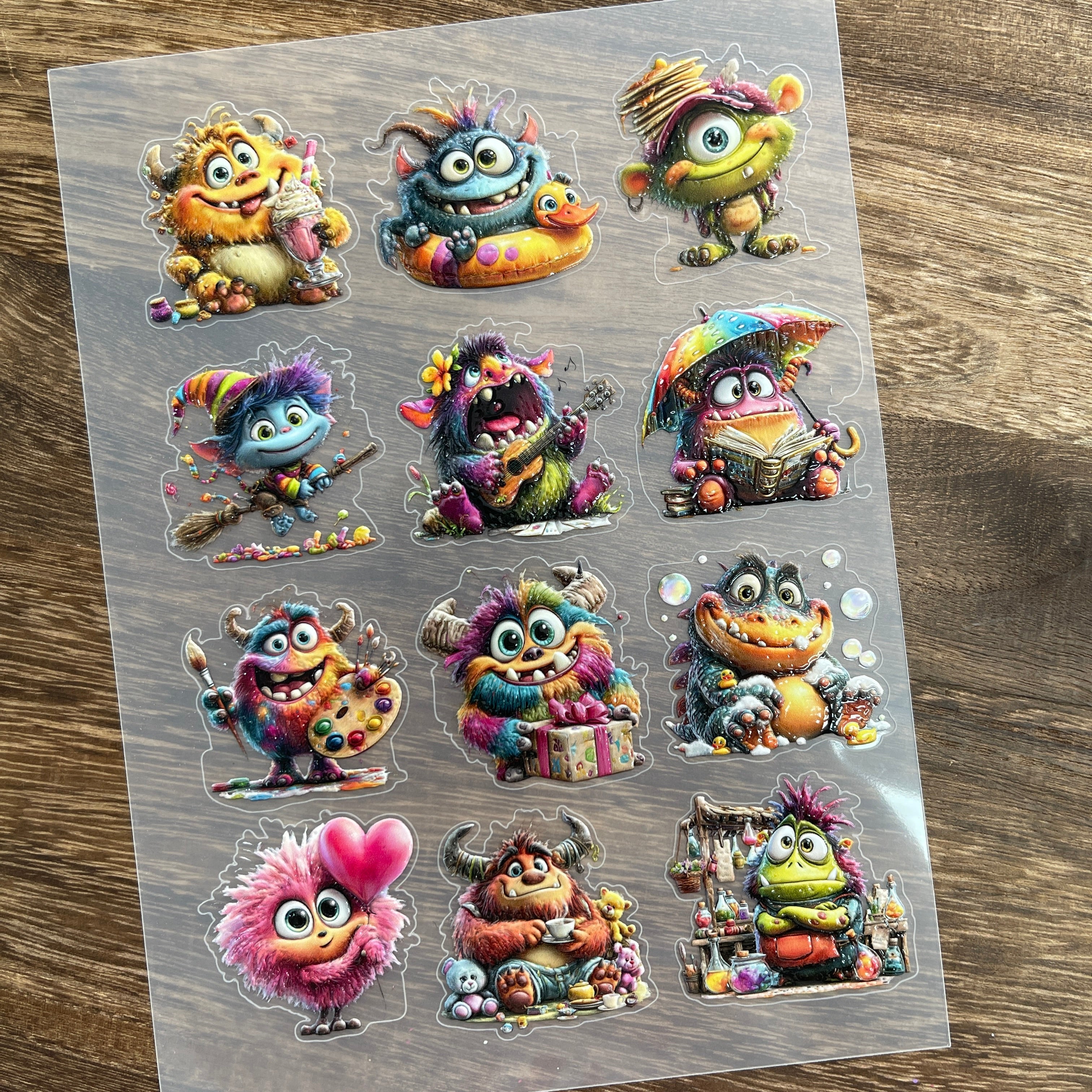 3D Colorful and interesting monsters PET Stickers 1pcs